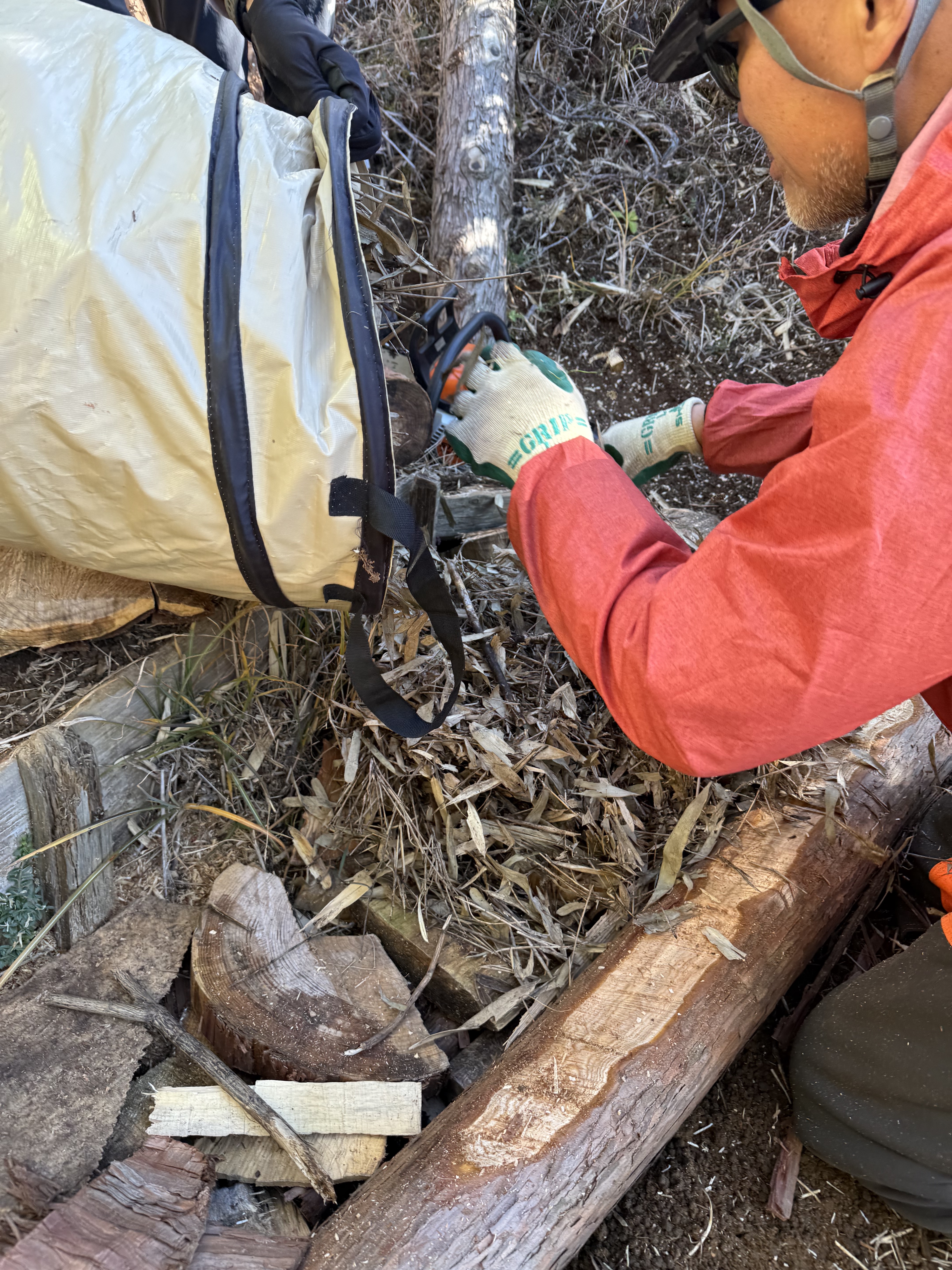 実際の作業では、地形の傾斜や微細な特徴を丁寧に観察しながら、周辺の土壌と無理なくつながるように丸太や石を配置していきます。目的は単に「歩きやすくする」ことではなく、生態系の一部として機能する道を、自然に即して整えることにあります。