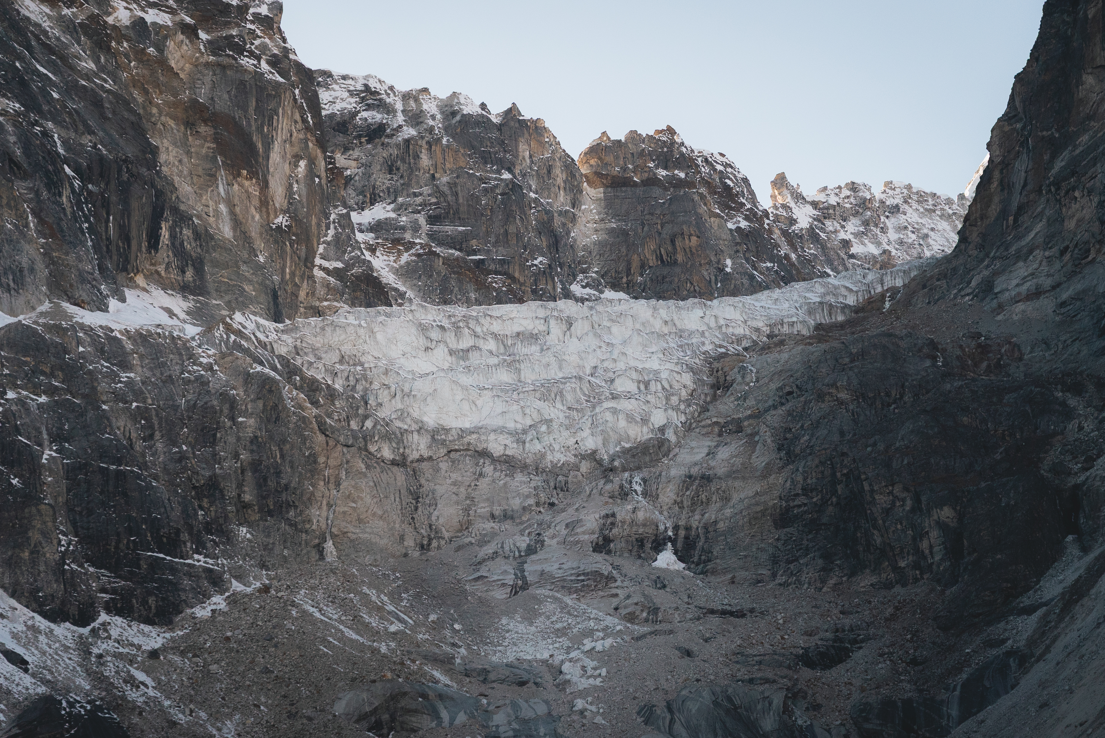 氷河の量は随分減ったと思います。昔はこのあたり(『Buddha Lodge』)まで氷河がありましたが、今はベースキャンプ付近にいくまで氷河はありません。