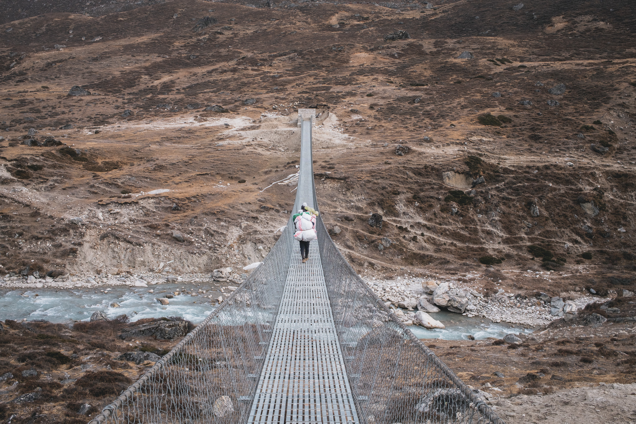 ベースキャンプに辿り着くまでに、何度も吊り橋をわたる。 -