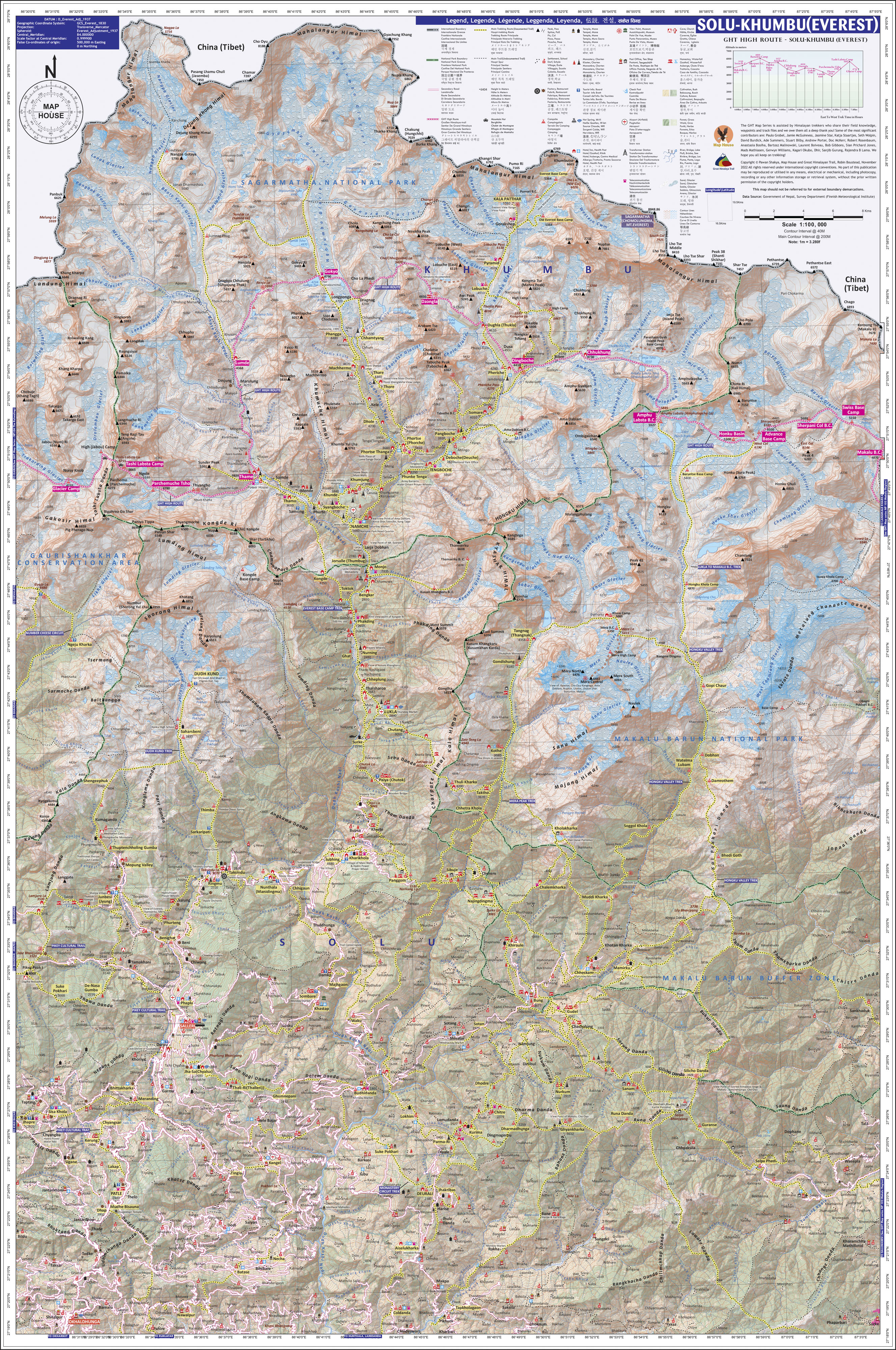 トレッキングに訪れる人が最初に手にするのが、ガイドマップ。現地で販売されている1992年版と2024年版の地図を比べると、中国との国境付近の氷河が消失していたり、低地の氷河が後退していたりと、この約30年間での氷河の変化が分かります。