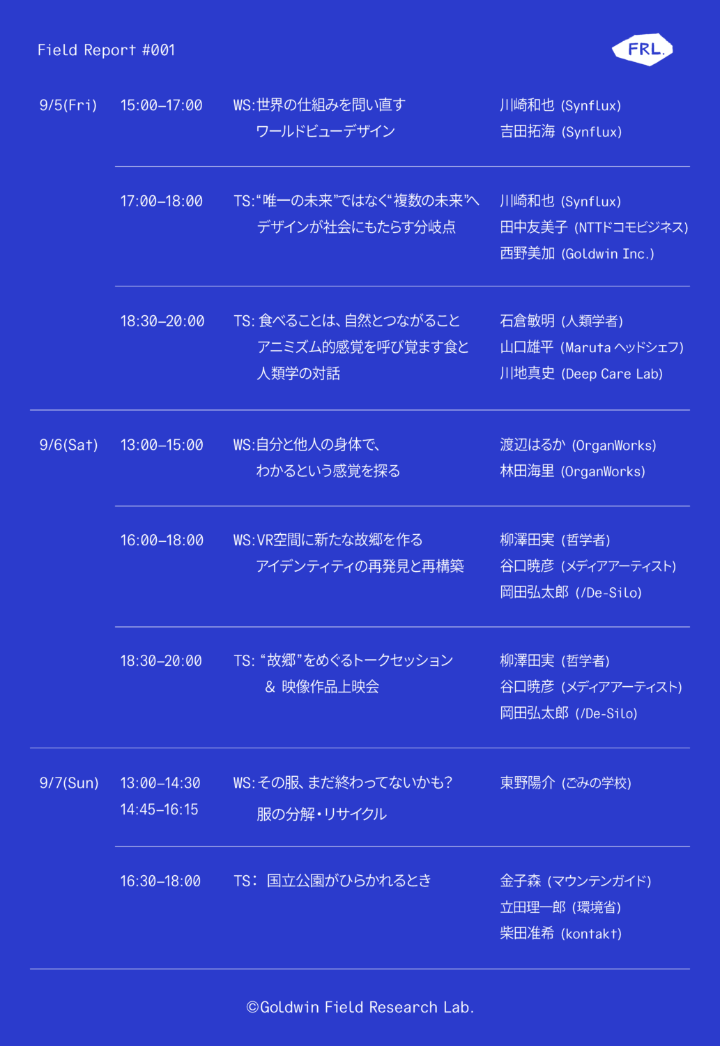 「問いと探求のフィールドワーク」、「フィールドで学び、みんなで考えて、行動していくための実験場」として、ゴールドウインのスタッフが中心に社内外さまざまな方々と協働し、みなで問い、企画、取材、編集、執筆まで行うプロジェクトです。